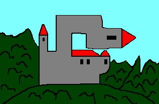 Herr Müller eilt davon und seine Frau tritt in das Schloss ein.